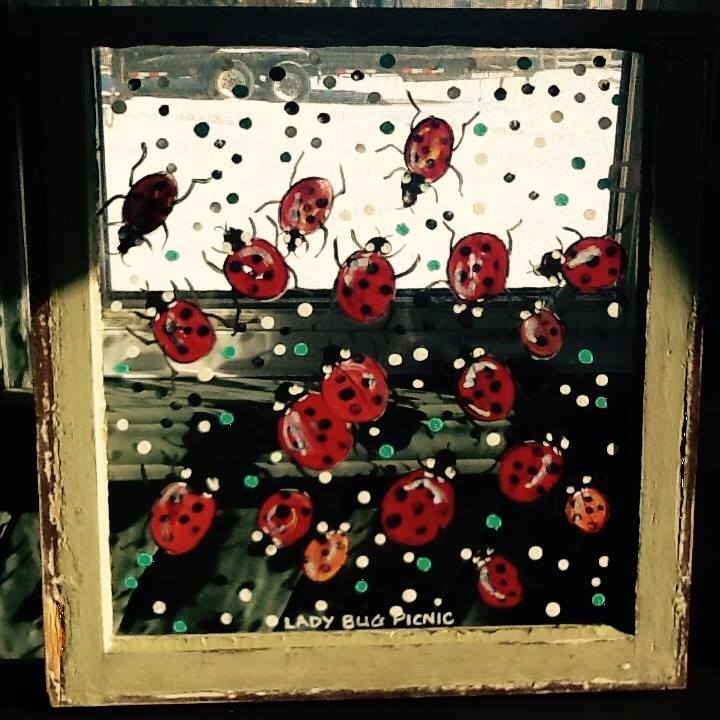 Lady Bug Picnic_Acrylic on reclaimed Window Published March 7, 2018 at 720 × 720 in Lady Bug Picnic_Acrylic on reclaimed Window